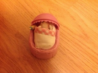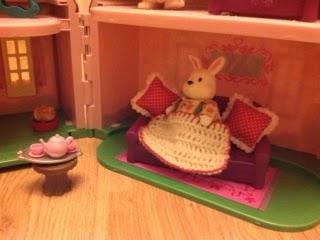 So I was hard pressed to help furnish the house. I started with poor baby bunny and managed to get him a sort of sleeping bag that fits his tiny crib:
