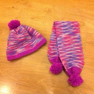 Here is the complete set, which my daughter already wore to school today. Now my son wants one too, so I'll have to put the needles to use again...