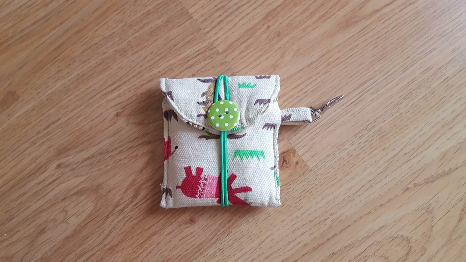 I let him go through my fabric stash and pick the fabric he wanted for the pouch, same with the button. And as an afterthought I decided to make the pouch a clip on, hoping it will be harder for it to get lost that way.