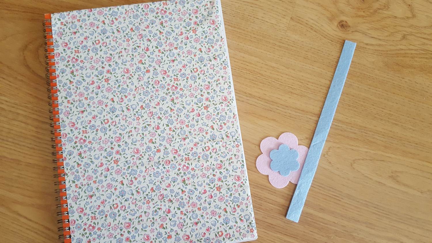 So, in under 10 minutes I hid the original notebook covers (back and front) under the cute floral paper.