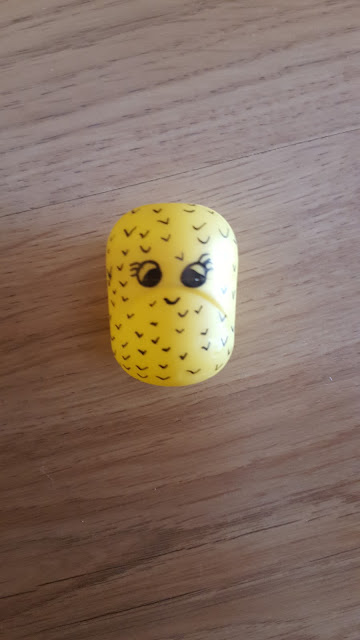 Ready for another cute upcycle? Recently we tackled the task of cleaning up my daughter's play kitchen and we found a couple of little plastic boxes. They are yellow and look like small eggs - and, as far as I recall, came inside those  Kinder Surprise chocolate eggs.