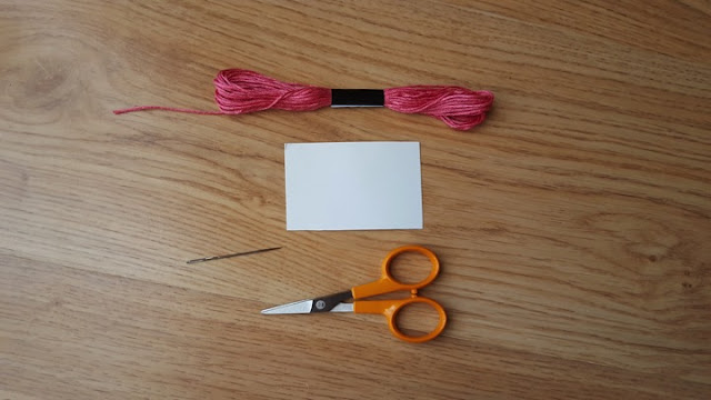 • a rectangle of thin cardboard or cardstock (the one I used in for these tassels is 8 x 5 cm (with the 5 cm corresponding to the approximate height of the tassels) but if you want your tassels longer or shorter you can adjust sizes easily)