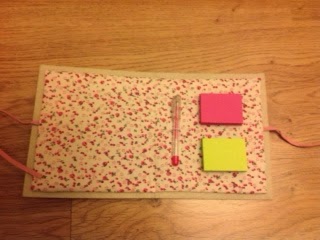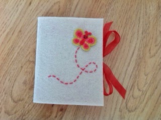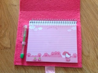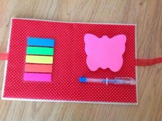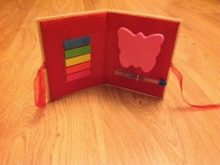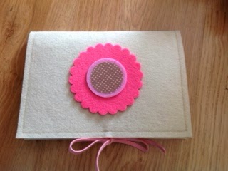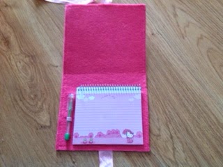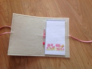 Now, instead of a notebook lost in the middle of my craft supplies I have a cute notebook cover to go with it. Next time we are invited to a girl's birthday party, I already have the gift ready, I just need to wrap it!