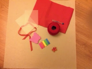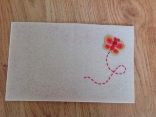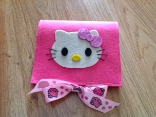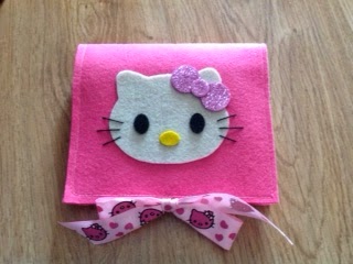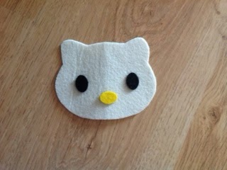 Anyway, to make the Hello Kitty in the cover I printed a HK face from the Internet and traced the shape onto a piece of felt. The eyes and nose were also made of felt. This is how it looked in its early stages: