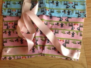 If you do not want to add a pocket, skip this step and go directly to step 2. If you decided to make a pocket, that is the first thing you will have to sew. Pin fabrics right sides together and sew around the edges, leaving an opening at the bottom.