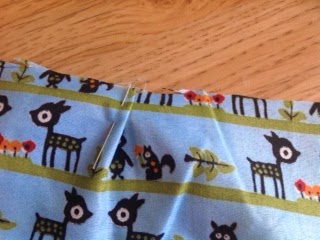 Start by pinning the two lining pieces right sides together. Sew around the sides and part of the bottom, again leaving and opening. Don't sew the top.