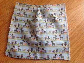 You with need to cut six bag pieces, two from the outside fabric, two from the lining and two from batting. If your exterior fabric has a pattern, try to cut both pieces in a way that the pattern matches on both sides once you sew the front to the back.
